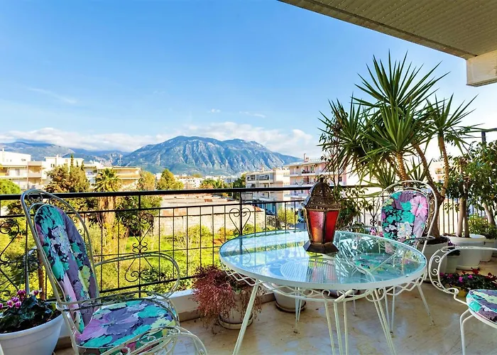Bright Comfy Flat Near The Beach & The City Center van 85 m^2 heeft een groot terras en ligt op sechts 20 minuten te voet van The Church of Agioi Apostoloi. Het strand appartement in Kalamáta is gelegen dicht bij het Stedelijk treinpark van Kalamata en verwelkomt gasten met handige schoonmaakfaciliteiten, zoals een wasmachine.